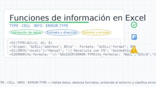 Excel [Excel] Cómo utilizar funciones de información [Introducción al análisis de datos] Guía completa en español para principiantes sobre cómo utilizar las funciones de información en Excel, incluyendo TYPE, CELL, INFO y ERROR.TYPE, con ejemplos prácticos. 2025.02.20 Excel
